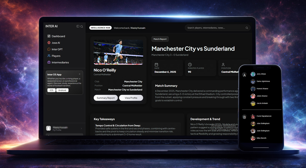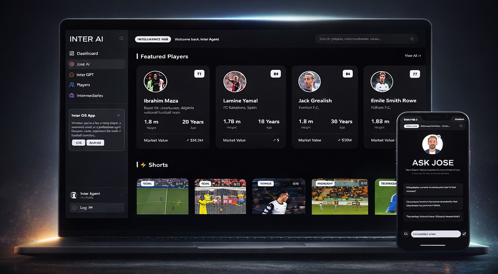 Say goodbye to outdated tools, fragmented processes, and missed opportunities. Inter AIA centralizes everything players, agents, and clubs need into one smart, AI-powered dashboard integrating copilots, performance apps, and global networks to manage and grow football careers.